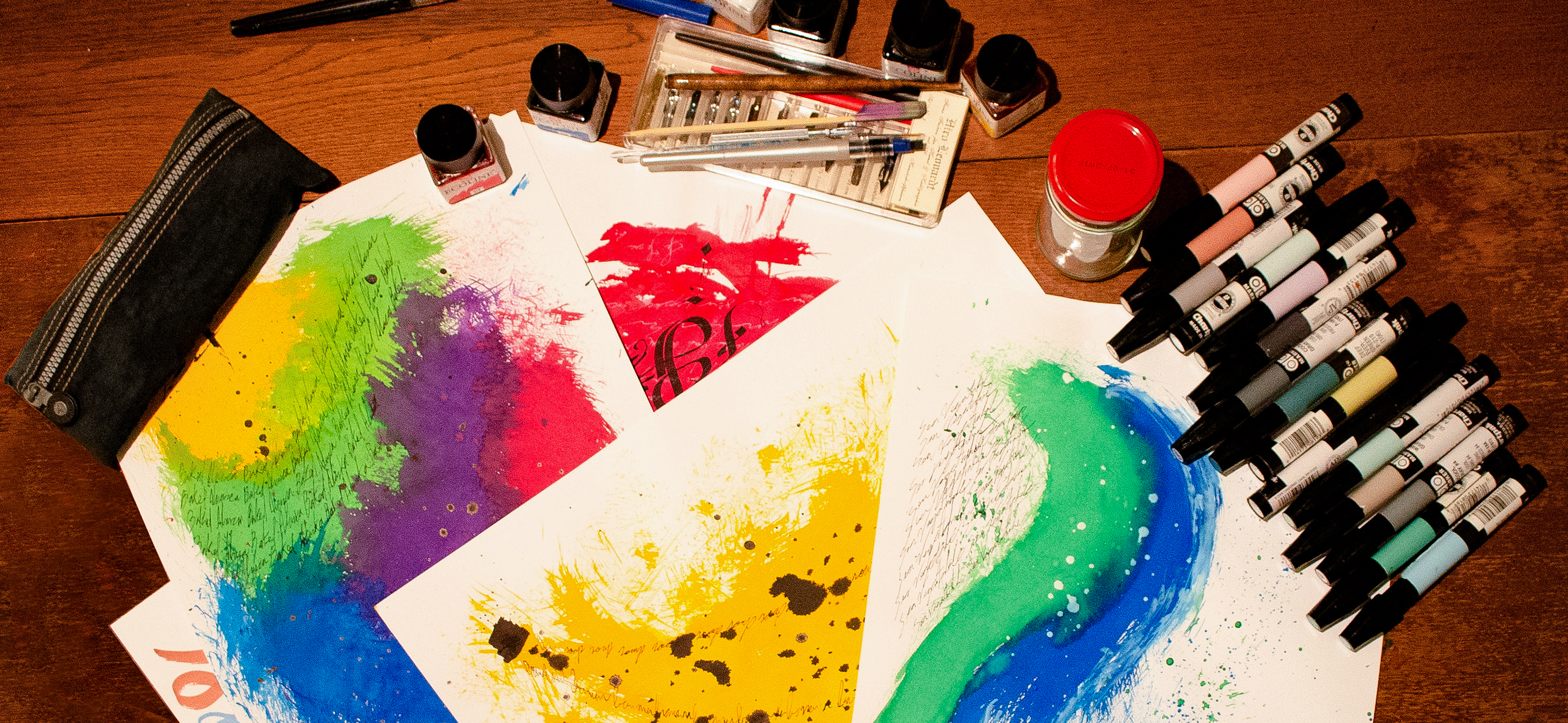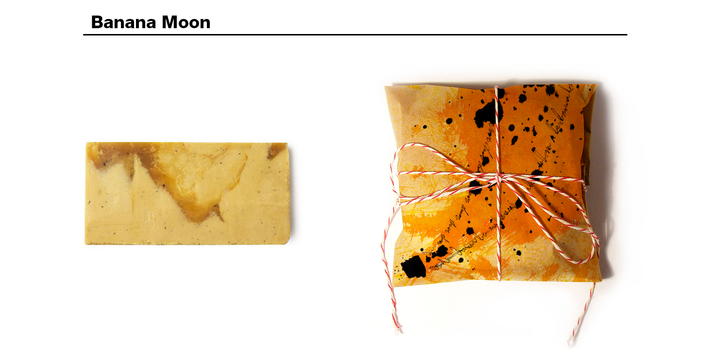 As an exercise for hands-on experimenting with ink and paper, I've chosen three soaps from LUSH and made one composition for each using calligraphic pens, visualizing a paper packaging for each product.